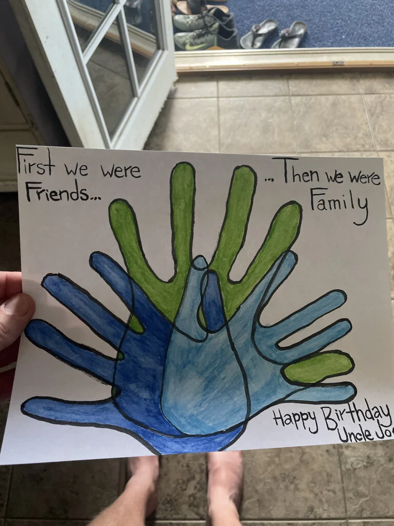 artwork by paddy + drew + colleen Jun 18 Written By Stephanie Keiko Kong First we were Friends…Then we were FamilyHappy Birthday Uncle Joel Stephanie Keiko Kong